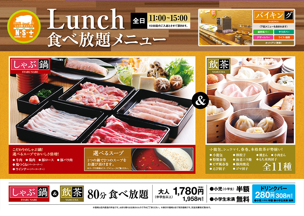 | 店舗名 | しゃぶ鍋食べ放題 NS+(エヌエスプラス) |
